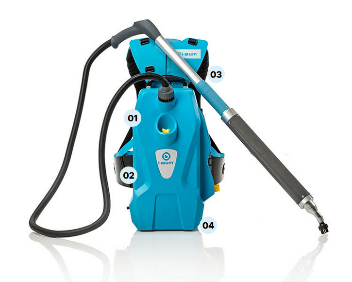 - 3. Ergonomic backpack and lance - Allows freedom of movement for the operative ensures fast gum removal.