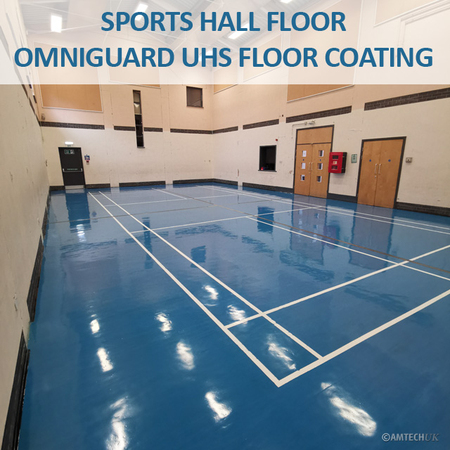 Sports hall floor stripped and re-recoated with Omniguard Floor Coating.