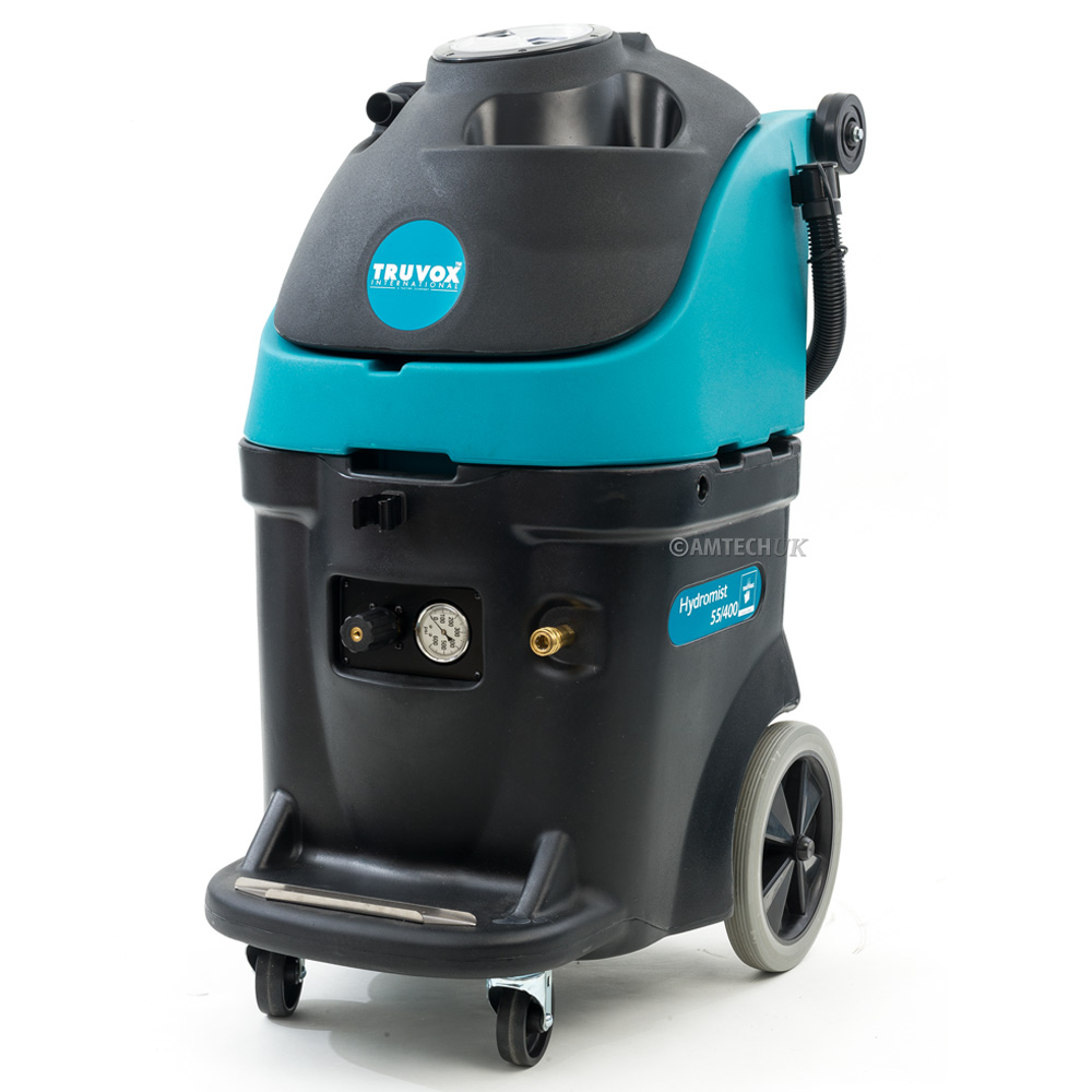 The Truvox Hydromist 55/400 carpet cleaning machine is the professional’s choice for those tough, large area carpet cleaning jobs. The combination of an 3000 Watt in-line heater and variable spray injection of up to 400 psi gives fast and efficient removal of embedded dirt and stains, leaving carpets fresh and clean.